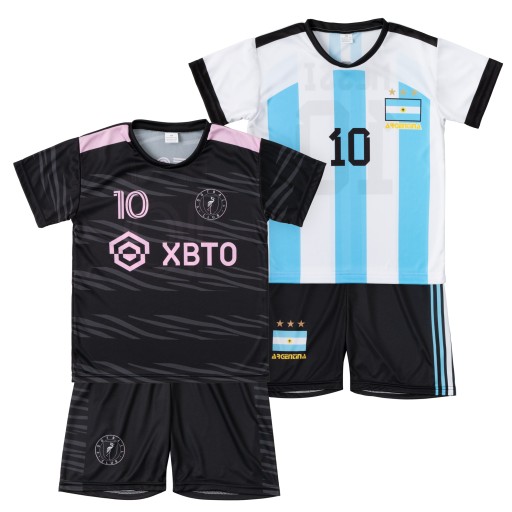 Posiadamy w sprzedaży nowe komplety piłkarskie w zestawie MESSI MIAMI 10 + MESSI ARGENTYNA 10 w rozmiarze 122 cm.