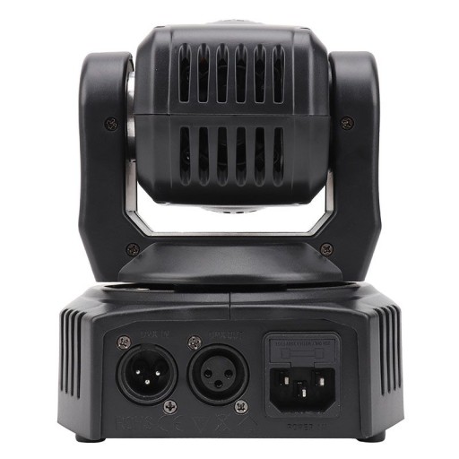NN 408 WASH 4x8W RGBW to minigłowica ruchoma LED wash, która doskonale sprawdza się jako oświetlenie estradowe na mniejszych scenach, w klubach tanecznych i dyskotekach, a także podczas różnego typu imprez prowadzonych przez mobilnych DJ-ów. Reflektor wyposażony został w 4 mocne, 8-watowe diody operujące światłem w palecie RGBW. W tylnej części podstawy znajdują się 3-stykowe złącza XLR umożliwiające sterowanie głowicą LED za pomocą protokołu DMX. Z przodu ulokowano panel sterowania złożony z cyfrowego wyświetlacza oraz 4 przycisków, dzięki którym możliwe jest poruszanie się po menu i ustawienie parametrów pracy jednostki.
