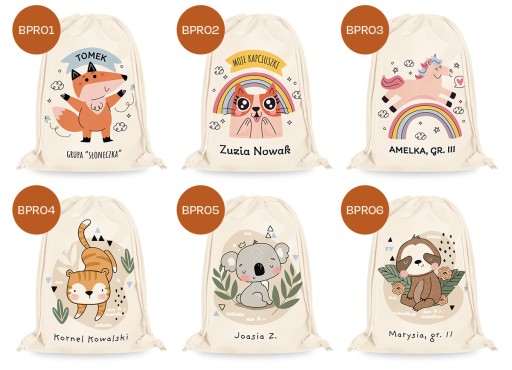 Pamiętaj, aby w wiadomości do sprzedającego podać tekst, który ma zostać nadrukowany - może to być samo imię, inicjały, imię i nazwisko, nazwa grupy, przedszkola itp. - na wzorach przedstawione są jedynie propozycje, które można modyfikować.