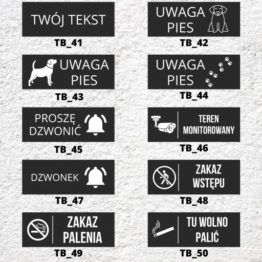 - W przypadku braku podania wybranego wzoru tabliczki, wysyłamy ten, który znajduje się na zdjęciu głównym naszej oferty.
