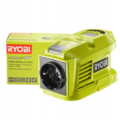 Przetwornica akumulatorowa RY18BI150A-0 Ryobi to swego rodzaju przenośne gniazdo elektryczne, które przyda się w terenie, np. w ogrodzie czy na campingu. Do przetwornicy można podłączyć urządzenie o maksymalnej mocy 150W, np. telefon, radio, latarkę LED, wentylator itp. Z jego pomocą można też ładować urządzenia zasilane z gniazda USB. Przetwornica jest przystosowana do pracy z akumulatorem litowo-jonowym 18V ONE+, który zapewni energię danemu urządzeniu, w granicach swojej pojemności. Po zainstalowaniu akumulatora przetwornica konwertuje prąd stały na prąd przemienny o napięciu 230V do zastosowań w gospodarstwie domowym lub na prąd stały o napięciu 5V w gnieździe USB (do 2,4A). Powstały w gnieździe prąd przemienny nie ma przebiegu sinusoidalnego, dlatego nie zaleca się używania przetwornicy do zasilania niektórych rodzajów wrażliwych urządzeń elektronicznych lub elektrycznych zawierających sprężarkę.
