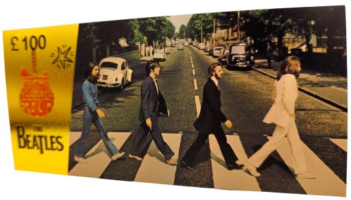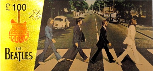 Fantazyjny banknot z wizerunkiem legendarnego zespołu z Liverpoolu.