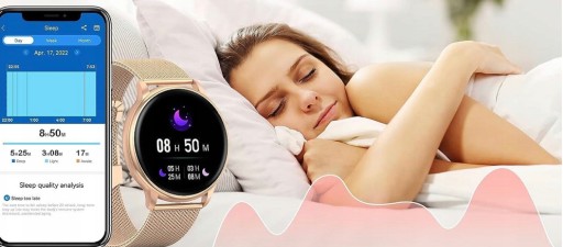 Zegarek wykorzystuje wbudowane czujniki, aktualizuje algorytmy systemowe, analizę dużych zbiorów danych do wykrywania snu, wykorzystuje czujniki do monitorowania tętna, a ruch nadgarstka wykrywa, że śpisz, zasypiasz i nadal śpisz, inteligentna analiza statystyczna czasu snu. Zapisuje dane, dowiedz się jaka jest jakość twojego snu.