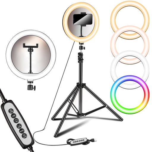 ⭕Lampa pierścieniowa RING LED RGB do zdjęć filmów selfie makijażu LibertyLine RIVONI + statyw + uchwyt do telefonu