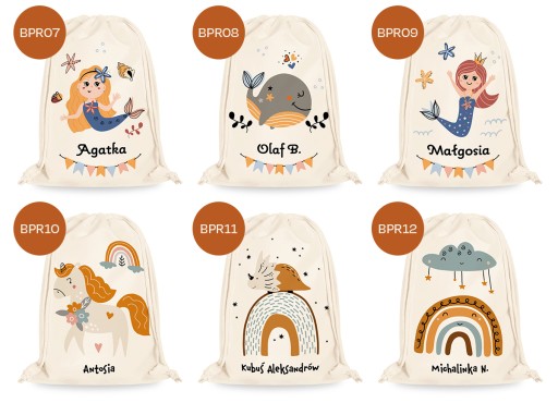 Pamiętaj, aby w wiadomości do sprzedającego podać tekst, który ma zostać nadrukowany - może to być samo imię, inicjały, imię i nazwisko, nazwa grupy, przedszkola itp. - na wzorach przedstawione są jedynie propozycje, które można modyfikować.