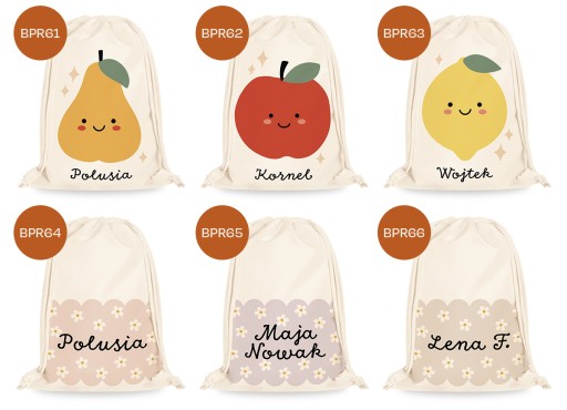 Pamiętaj, aby w wiadomości do sprzedającego podać tekst, który ma zostać nadrukowany - może to być samo imię, inicjały, imię i nazwisko, nazwa grupy, przedszkola itp. - na wzorach przedstawione są jedynie propozycje, które można modyfikować.