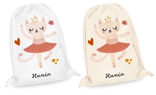 Imienny worek z piękną, modną, kolorową grafiką to idealne rozwiązanie na przechowywanie kapci i ubranek dziecka w żłobku, przedszkolu czy szkole.