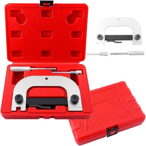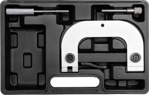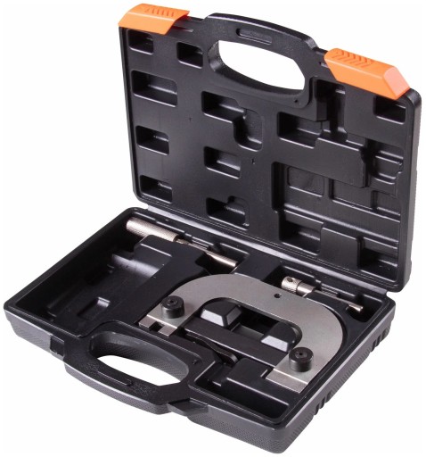 Profesjonalny 3-elementowy zestaw do obsługi rozrządu umożliwiający unieruchomienie kół zębatych rozrządu w pozycji serwisowej, podczas wymiany paska rozrządu.
