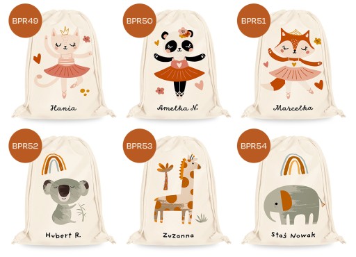 Pamiętaj, aby w wiadomości do sprzedającego podać tekst, który ma zostać nadrukowany - może to być samo imię, inicjały, imię i nazwisko, nazwa grupy, przedszkola itp. - na wzorach przedstawione są jedynie propozycje, które można modyfikować.