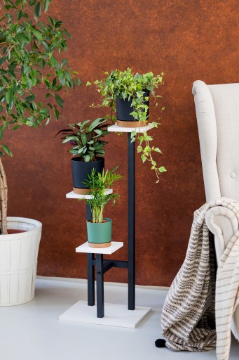Solidna konstrukcja i szeroka podstawa zapewniają stabilność kaskadzie doniczkowych roślin. Pokryty warstwą farby, nowoczesny kwietnik Peak jest odporny na korozję. To nie tylko praktyczny dodatek. To elegancki stojak na kwiaty, który spowoduje, że Twoje kwiaty zawsze będą w centrum uwagi.