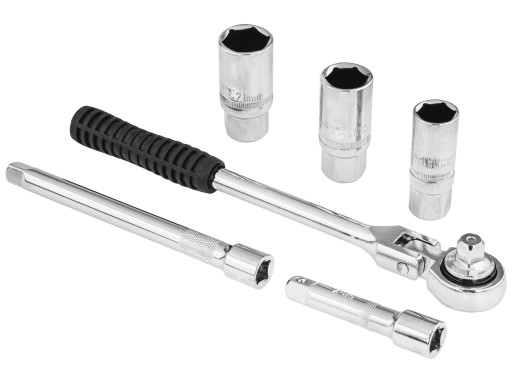 Uniwersalny klucz do świec z wymiennymi nasadkami. Pozwala na sprawną i szybką wymianę świec zapłonowych i zamontowanie nowych.