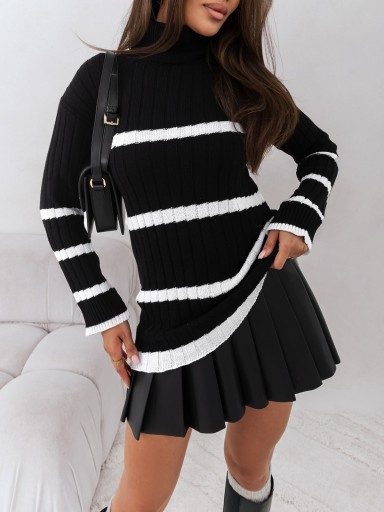 CIEPŁY MODNY SWETER GOLF W PASKI PRĄŻKOWANY