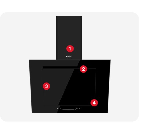 - Sterowanie sensorowe Slider dokładna i płynna regulacja mocy wystarczy przesunąć palcem po pasku na okapie.