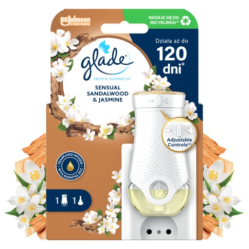 Elektryczny odświeżacz powietrza GLADE ELECTRIC SCENTED OIL z wkładem o zapachu jaśminu i drzewa sandałowego