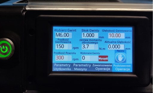 W obu trybach odczyt aktualnej głębokości na jakiej znajduje się gwintownik.