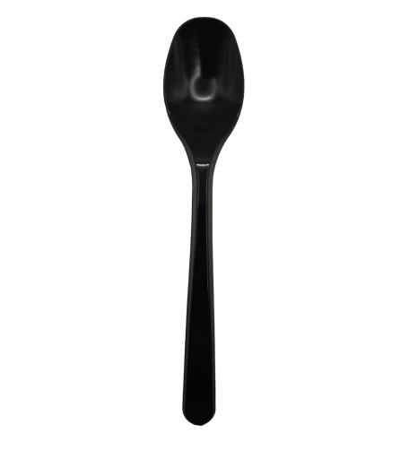 Ложка черная пластиковая многоразовая толстая с сертификатом, 50 шт.