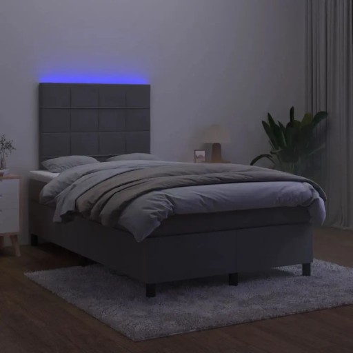 Łóżko kontynentalne z materacem i LED, szary aksamit, 120x200cm Lumarko!