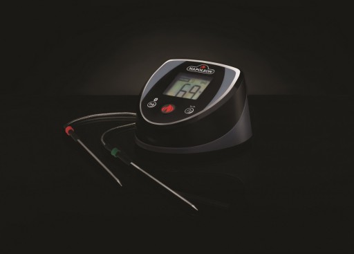 Termometr bezprzewodowy Napoleon służy do kontrolowania temperatury wewnątrz grillowanego mięsa. Pozwala na wygodny pomiar w każdym momencie. Wiadomo że różne gatunki mięs mają zróżnicowaną właściwą temperaturę pieczenia a stosowanie termometru umożliwia precyzyjną jej kontrolę. Termometr bezprzewodowy ze stali nierdzewnej, zasięg 60m, wielojęzykowy, odczyt w stopniach Celsjusza lub Farenheita, odporny na ciepło.