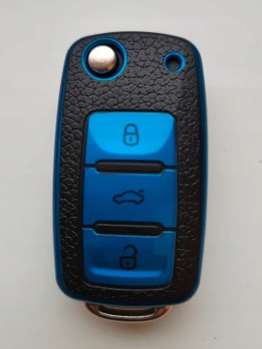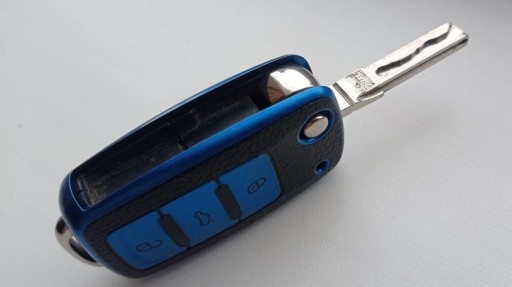 Etui pokrowiec na klucz VW Polo Golf Passat Sharan Scirocco Touran Beetle Amarok CC grot TPU pasek niebieski