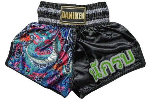 Spodenki wykonane z wysokiej jakości satyny, 100% poliestru. Spodenki czarne nowa grafiką wykonaną sublimacją z logo DANIKEN w pasie. Posiadają rozcięcia po bokach, co zapewnia komfort i swobodę ruchów przy wykopach. W pasie została wszyta bardzo szeroka guma - 9,5 - 9 cm i sznurek. Na jednej nogawce znajduję się haft w języku tajskim - oznacza słowo "wojownik". Wszystkie spodenki marki Daniken są modelami Unisex - pasują zarówno dla mężczyzn jak i dla kobiet. Przez kilkanaście lat dostosowaliśmy produkt tak aby zadowolił każdego! Spodenki w małych rozmiarach również idealnie sprawdzają się dla dzieci! Kolory przedstawione na zdjęciu mogą delikatnie różnić się w rzeczywistości.