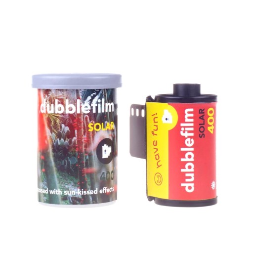 Dubblefilm Solar to kreatywny negatyw kolorowy który ma nałożone na film losowo rozłożone plamy wyglądające jak efekty solaryzacji - ciepłe przebarwienia.