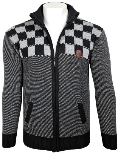Кардиган мужской черный с узором в шахматном порядке Р259, размер L