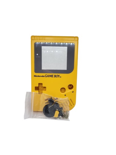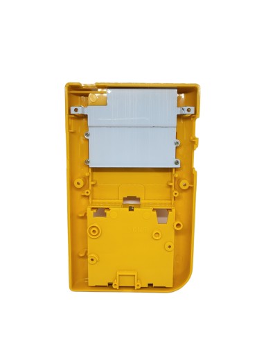 Zastępcza żółta obudowa wraz z stykami baterii, plastikową szybką zabezpieczoną folią z samoprzylepną taśmą, przyciskami, śrubkami oraz osłonką przeciwpyłową.