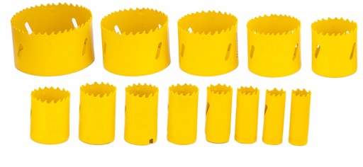 - otwornice w rozmiarach: 19 mm, 20 mm,22 mm,25 mm,29 mm,32 mm,35 mm,38 mm,44 mm,51 mm,57 mm,64 mm,76 mm