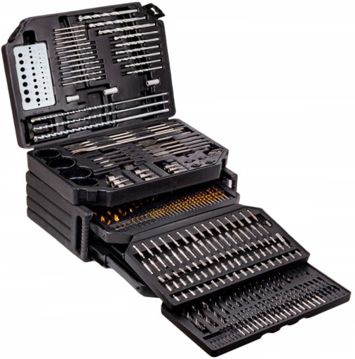 ZESTAW WIERTEŁ I BITÓW DO DREWNA, METALU I BETONU 300 ELEMENTÓW