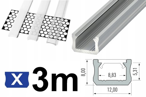 PROFIL ALUMINIOWY do taśm LED 3m TYP X Z KLOSZEM