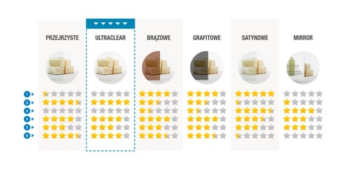 Tabela porównawcza właściwości użytkowych dostępnych wariantów szkła