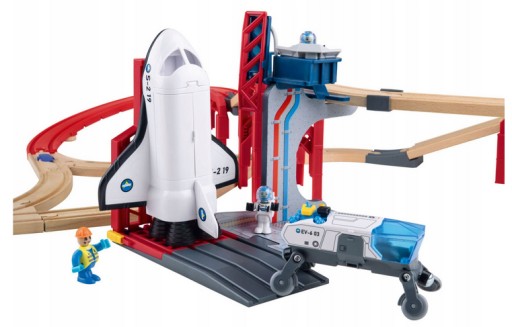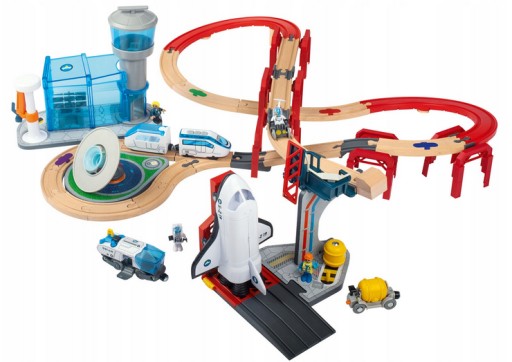 Zestaw do zabawy KOLEJKA DREWNIANA na baterie PLAYTIVE Stacja kosmiczna z dźwiękami KOSMODROM 75 elementów