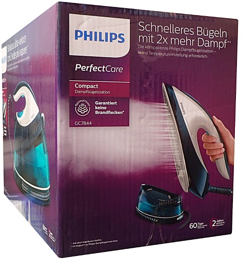Philips GC7844/20 PerfectCare Compact to generator pary firmy Philips odznaczający się, małymi rozmiarami, łatwością użytkowania i strumieniem pary dużej mocy.