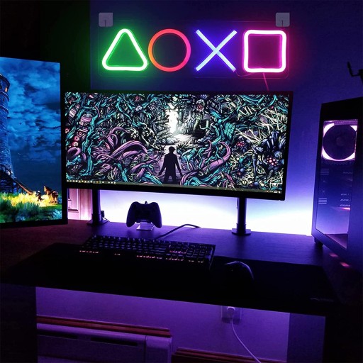 - Styl: symbol uchwytu PS4, światło neonowe