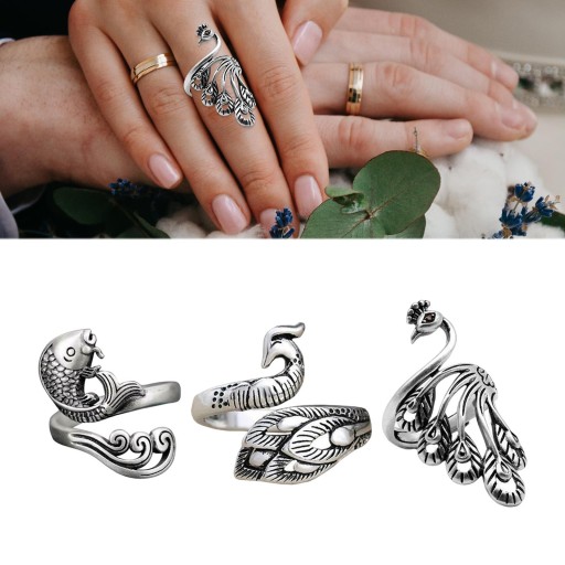 Knitting Hoop Rings: 3 różne kształty zwierząt, modny wygląd, w stylu vintage.