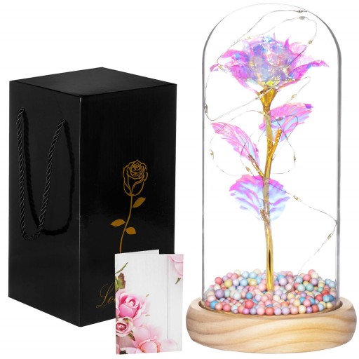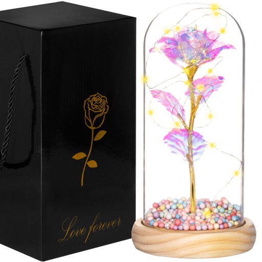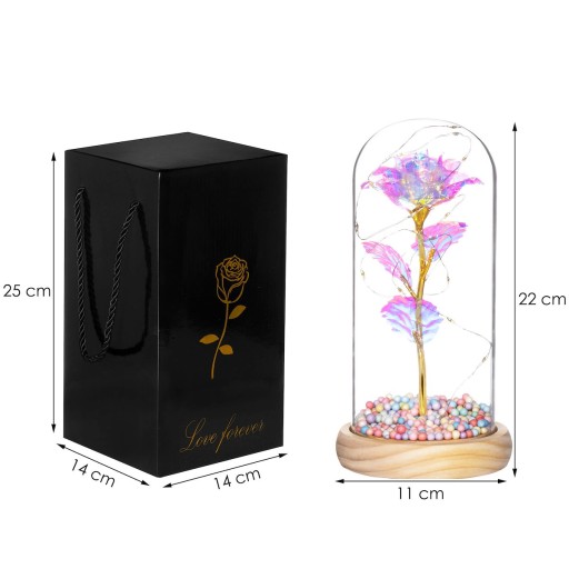 WIECZNA RÓŻA W SZKLE PREZENT ŚWIECĄCA LED 22cm