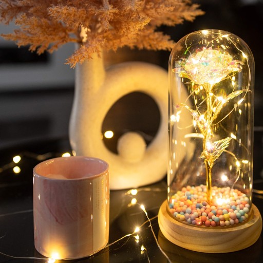 Róża wygląda ultra realistycznie, do złudzenia przypomina prawdziwy kwiat. Efekt wizualny - połączenie szklanego klosza, światła i kwiatu, robi duże wrażenie i nasuwa na myśl bajkowy klimat.