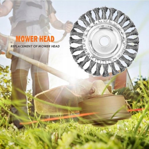 [Wysoka jakość] Głowica trymera tarczowego szczotki drucianej wykonana jest z wysokiej jakości stali, szczotka obrotowa z drutu stalowego nie jest łatwa do zniszczenia nawet po uderzeniu w skały i pniaki.