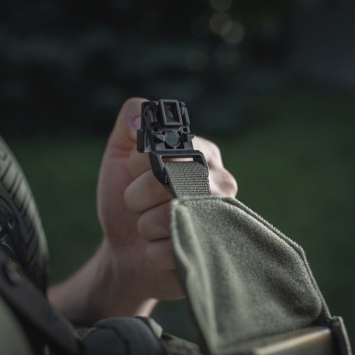 Produkt mocuje się do paska lub przyczepia do sprzętu za pomocą systemu Molle.