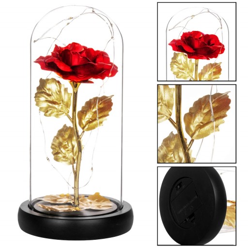 WIECZNA RÓŻA W SZKLE PREZENT ŚWIECĄCA LED 22cm