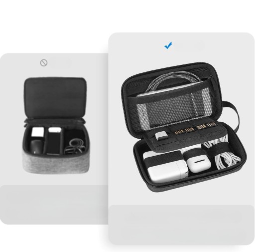 ta torba do przechowywania elektroniki posiada wystarczająco dużo miejsca, by pomieścić wszystkie Twoje niezbędne akcesoria, takie jak kable, pamięci USB, telefony komórkowe, ładowarki, myszy, słuchawki, dyski flash i wiele innych.