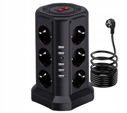 ВЕРТИКАЛЬНЫЙ РАЗЪЕМ ПИТАНИЯ 12 РАЗЪЕМОВ 5 USB ЧЕРНЫЙ