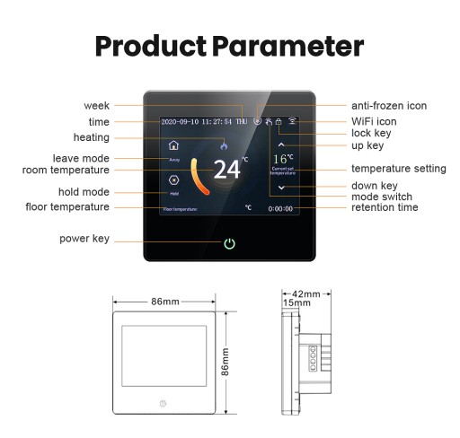 【Tygodniowy programowalny】 Termostat obsługuje różne ustawienia temperatury odpowiednio z 6 trybami czasu dziennie.