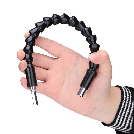 Jeśli trafiłeś na ciężko dostępne miejsce, a potrzebujesz przewiercić tam śrubę i po prostu nie sięga tam twoja wkrętarka. Ta przedłużka Ci w tym pomoże! Przedłużka zastała tak skonturowana, by z łatwością można było ją wyginać pod różnymi kątami, dzięki czemu pozwala dotrzeć do najtrudniej dostępnych miejsc. Przedłużka poradzi sobie z pracą nawet pod kątem 180 stopni.