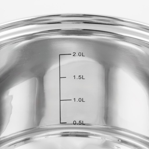 Garnki są praktyczne i poręczne. Posiadają nitowane uchwyty, wykonane ze stali nierdzewnej. Każdy garnek wyposażony jest w podziałkę litrażową, pomocną w gotowaniu potraw. Dno szybko się nagrzewa i równomiernie rozprowadza ciepło, co znacznie przyspiesza gotowanie, pozwalając oszczędzić czas i energię.