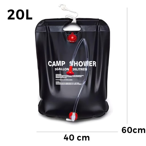 Często na biwakach w miejscach z dala od wody brakuje nam jej do przygotowania potraw czy wykąpania się. Worek prysznic solarny to idealne rozwiązanie. Do worka wystarczy nalać do 20l wody a następnie powiesić w nasłonecznionym miejscu. Kolor czarny worka sprawia, że worek znacznie szybciej się nagrzewa. Podgrzeje wodę do temperatury 50°C.