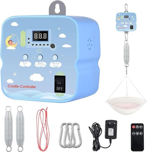 Wisząca elektryczna regulacja kołyski Ten kontroler kołyski dla niemowląt został ulepszony, praktyczny i trwały. Sprężyna i silnik są połączone w całości, co pozwala uniknąć hałasu, gdy inne produkty tego samego typu na rynku drgają w górę i w dół, a także są stabilne i ciche. Oszczędzaj energię i przekonaj swoje dziecko do szybkiego zasypiania.