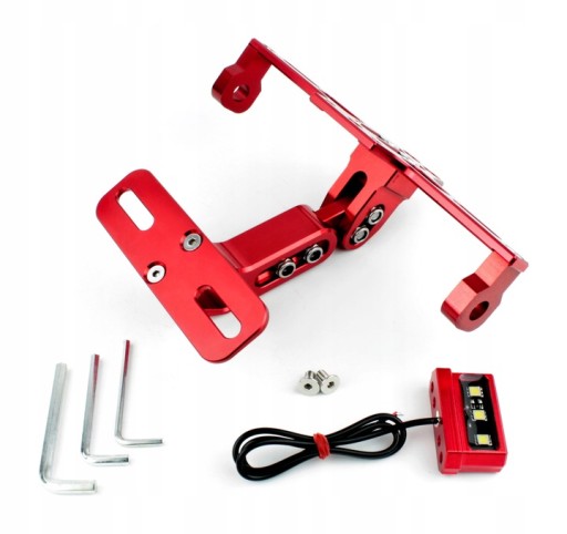 - Podświetlenie tablicy rejestracyjnej - W komplecie znajduje się podświetlenie LED oraz zestaw śrubek i kluczy imbusowych do jego montażu