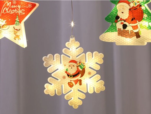 СВЕТОДИОДНАЯ ШТОРА САНТА СНЕГОВИК ОЛЕНЬ НА ПРОВОДЕ ДЛЯ УКРАШЕНИЯ ОКОННЫХ ПОДВЕСОВ