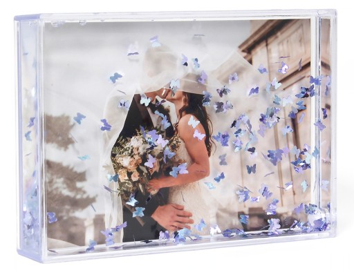 Urocza ramka z wodą i ozdobnymi płatkami jest idealnym sposobem na wyeksponowanie Twojego ulubionego zdjęcia w oryginalny sposób. Ta przezroczysta ramka świetnie prezentuje się zarówno w pionie, jak i w poziomie. Wypełniające ją płatki unoszą się w jej wnętrzu po potrząśnięciu tworząc wyjątkowy efekt. To doskonały prezent dla bliskiej osoby lub idealny dodatek do Twojej kolekcji dekoracji.
